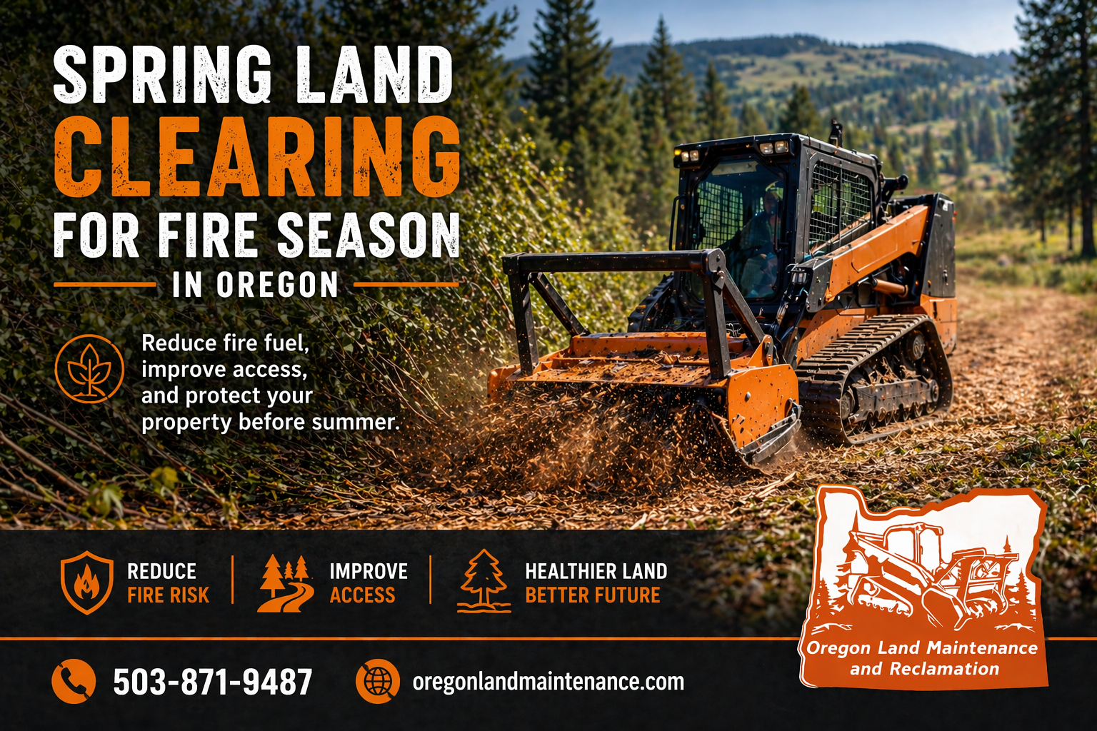 Spring land clearing in Oregon helps reduce fire fuel, improve property access, and protect rural land. Forestry mulching services for farms, orchards, and acreage.